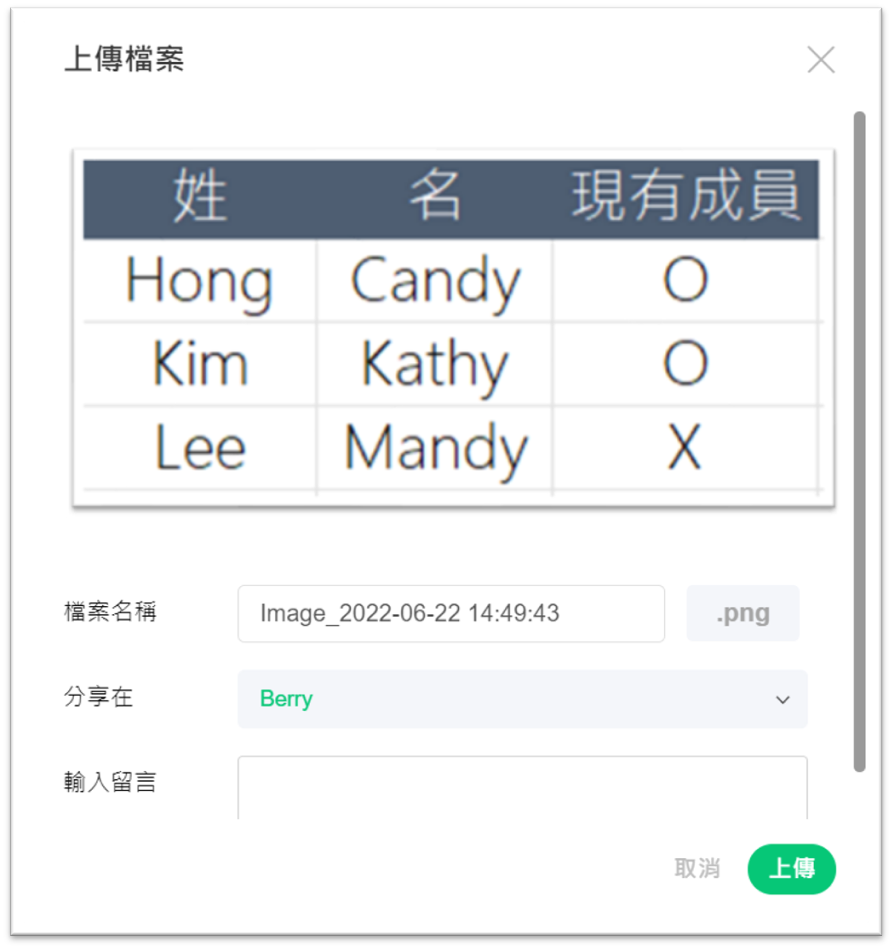 2. 於訊息輸入框直接貼上 (Ctrl +V),檔案將直接上傳並顯示於視窗中。