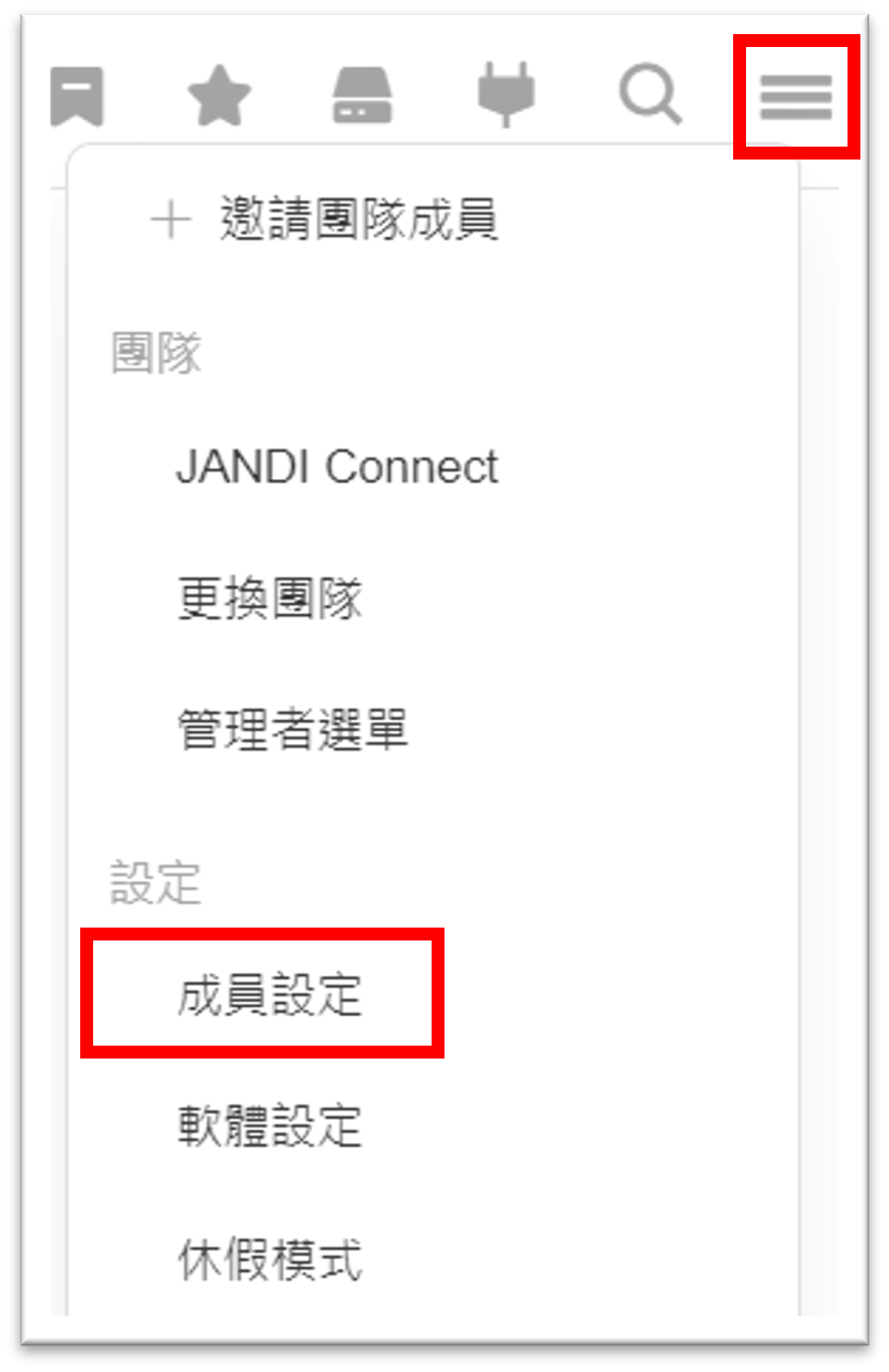 1. 於 JANDI 介面右上角,選擇 [≡],並點擊 [成員設定]。