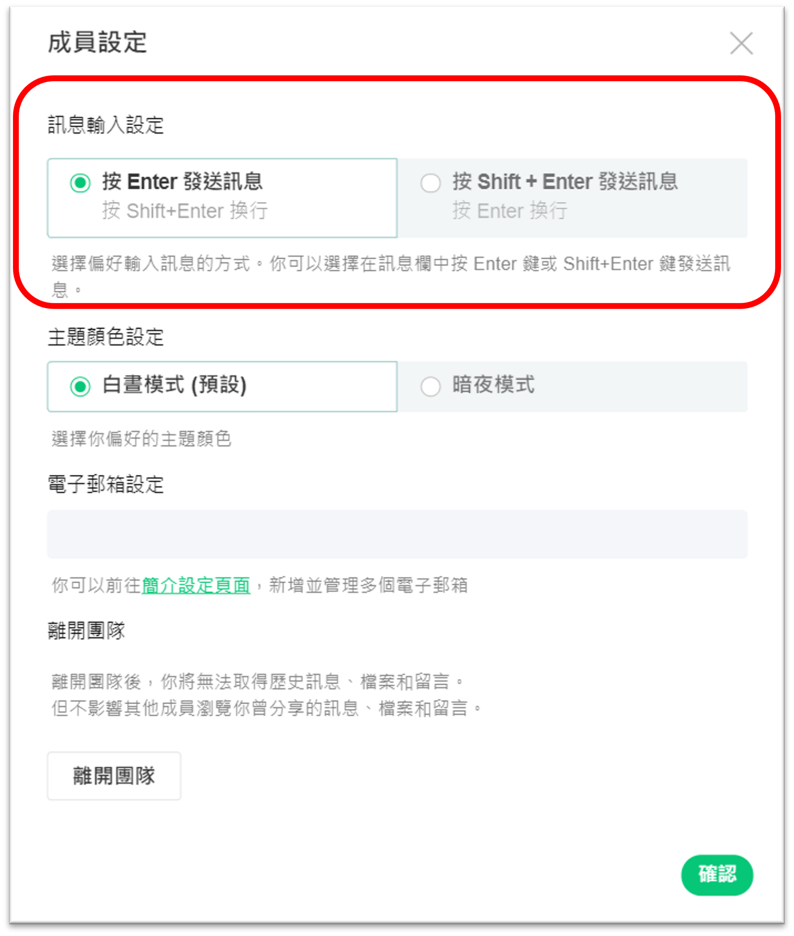 大部分發送訊息都是使用 Enter。為了避免誤按,我們增加了 Shift+Enter 的設定。