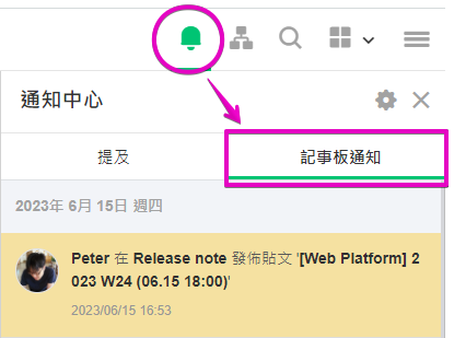 2. 查看 記事板議題 的通知中心