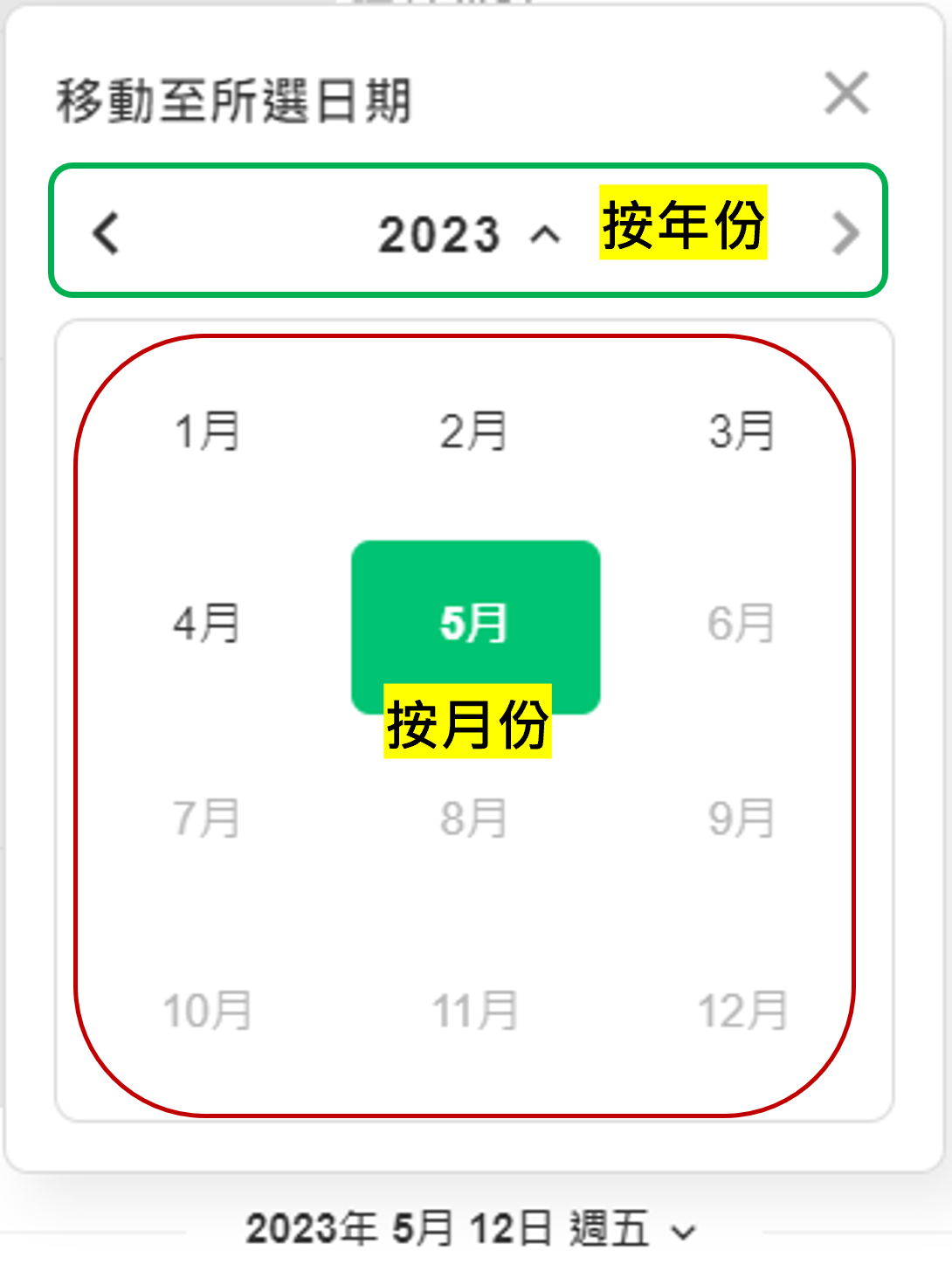如何操作:在議題中選擇日期 > 選擇您要查看的日期