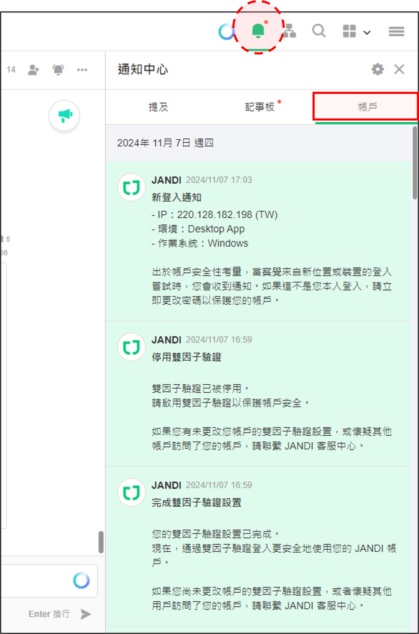現在,我們新增新功能來檢查和管理帳戶登入的訊息,以增強 JANDI 的安全性。
