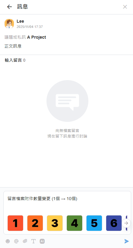 記事板議題與討論議題以及聊天所有對話的留言串檔案附件數量都從 1 個變更為 10 個。