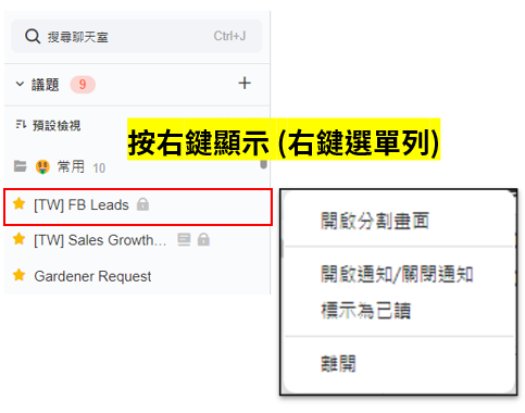 【右鍵選單列】僅支援於 PC應用程式中可用
