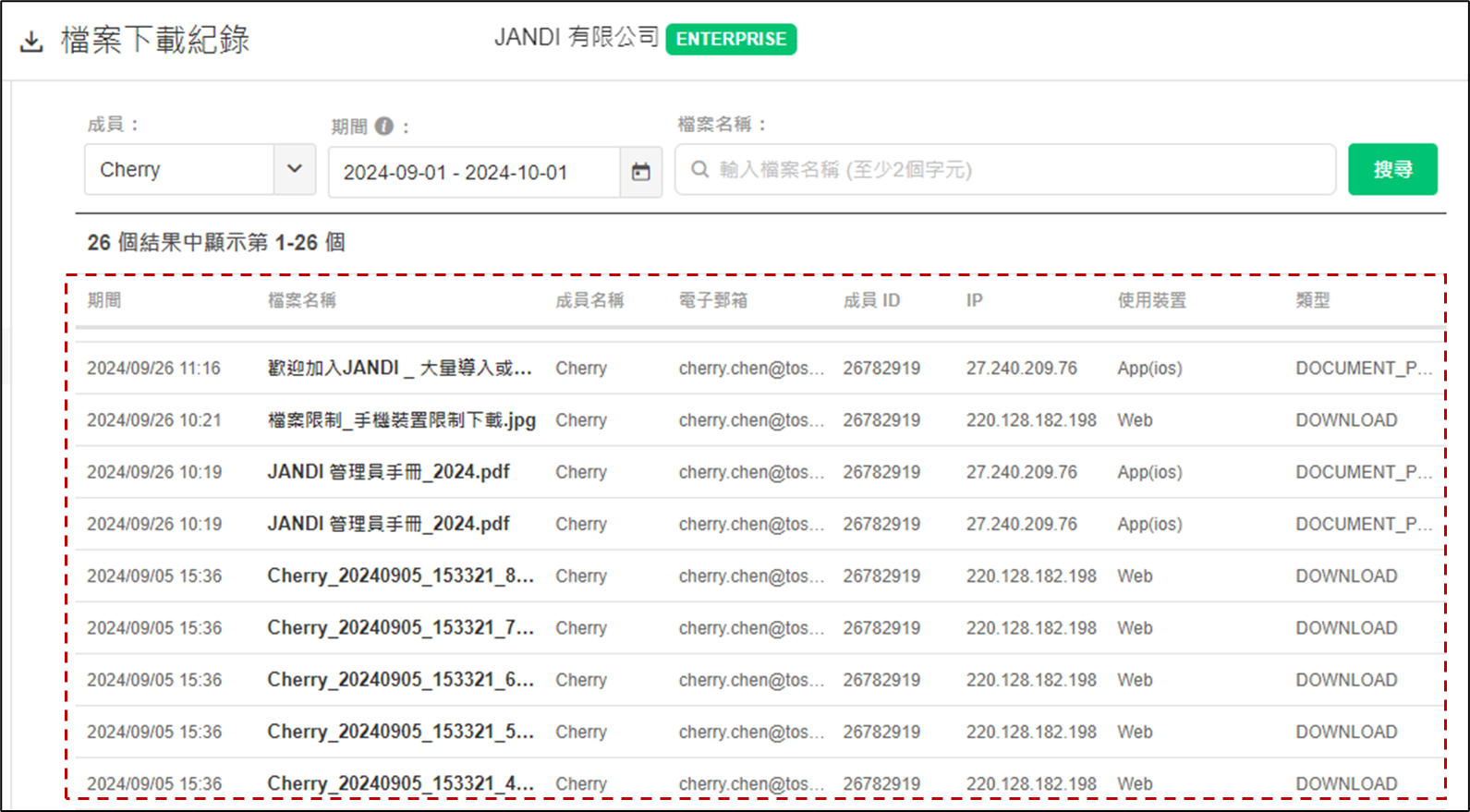 檔案下載紀錄:檢視團隊中一年內的檔案下載紀錄