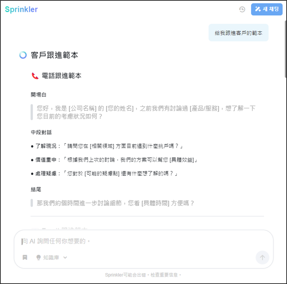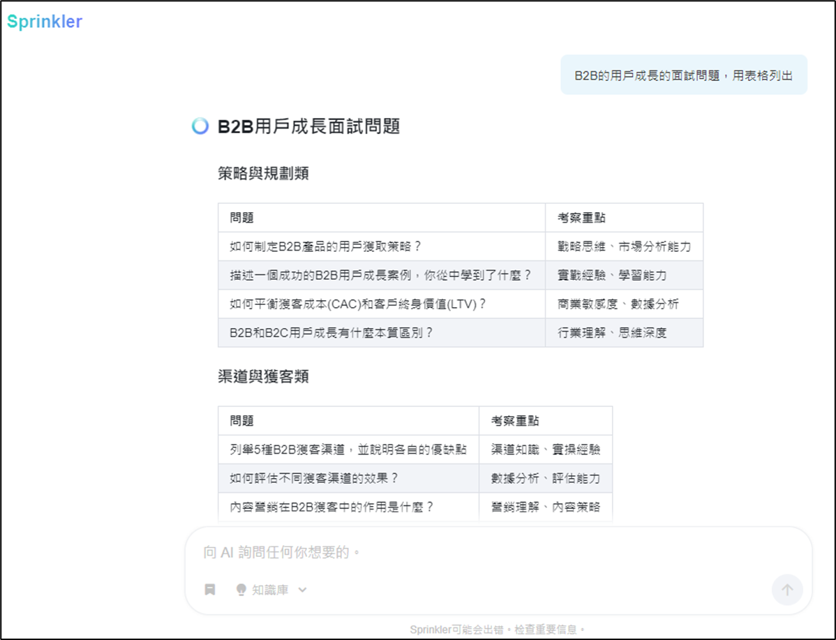 任何您好奇的問題,都可以詢問 Sprinkler!