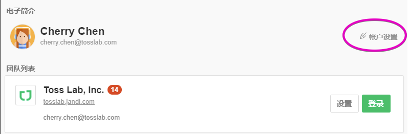 点击 JANDI 介面右上角的 [≡] 图示,并选择 [回到帐号首页] - [帐户设置]
