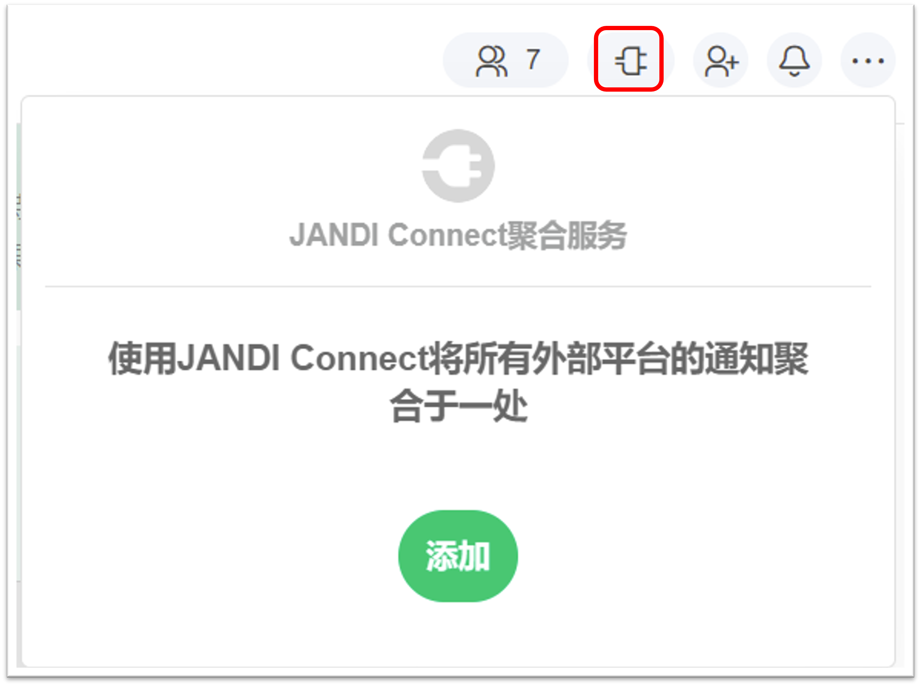 1. 于议题视窗上方或右侧工具列点击 [JANDI Connect] 插头图示。