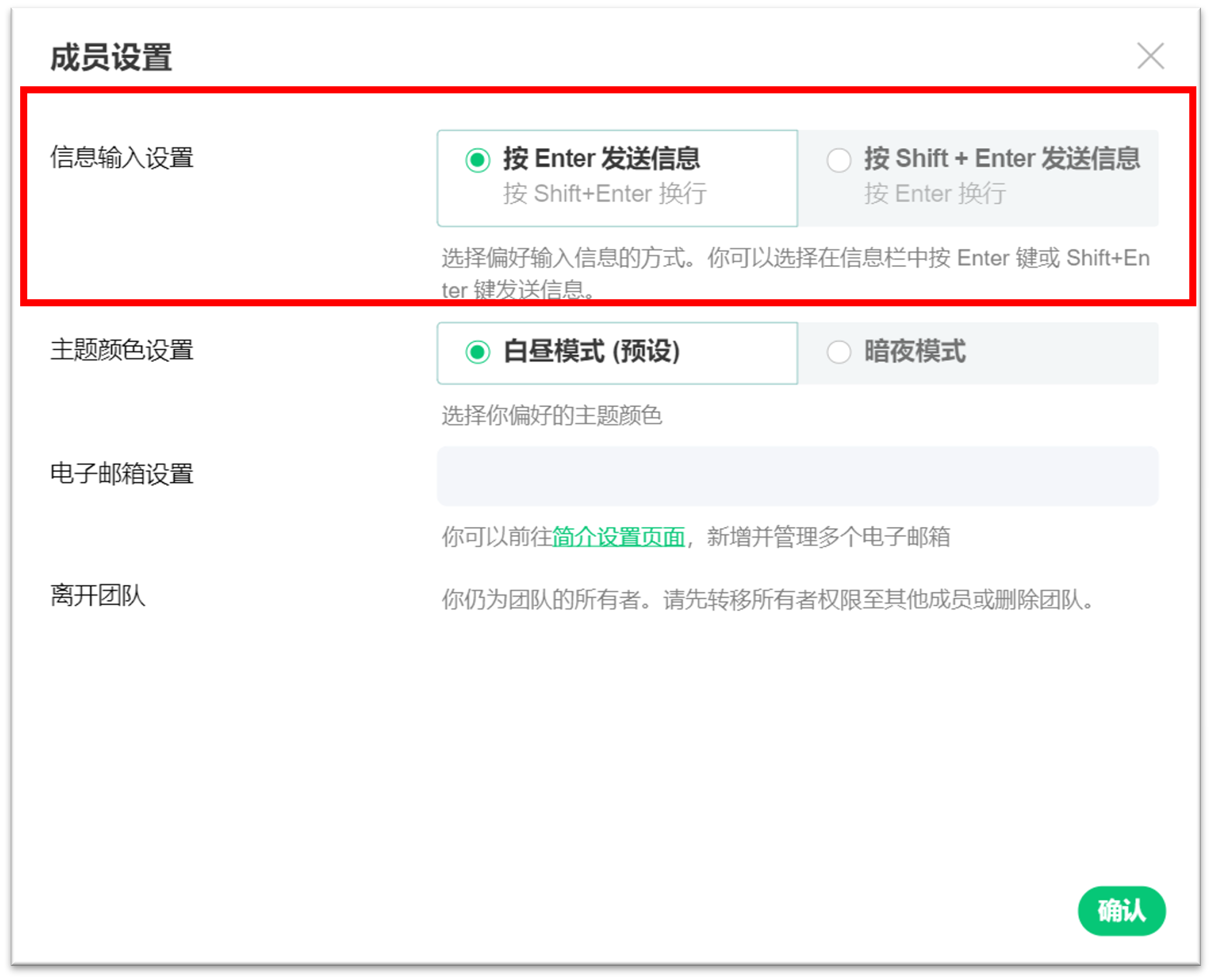 大部分发送信息都是使用 Enter。为了避免误按,我们增加了 Shift+Enter 的设定。