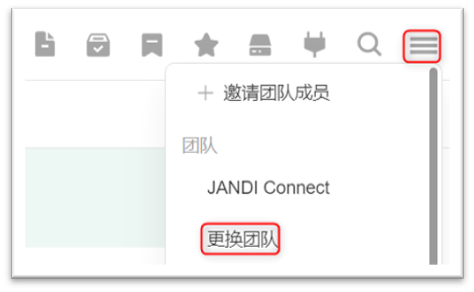 另外,在 JANDI 界面右上方[≡],选择更换团队。