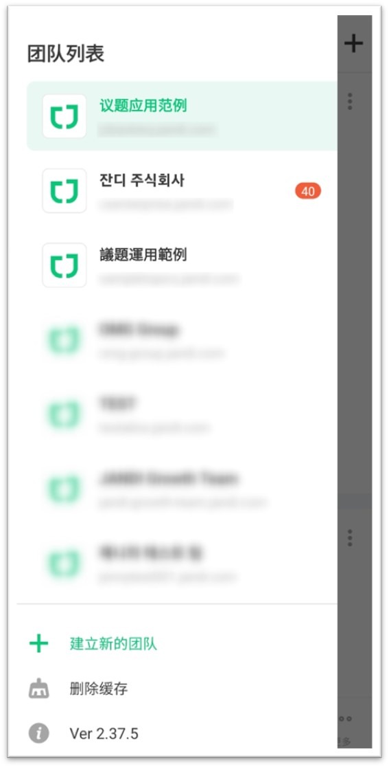 * 一个成员可以加入多个 JANDI 团队