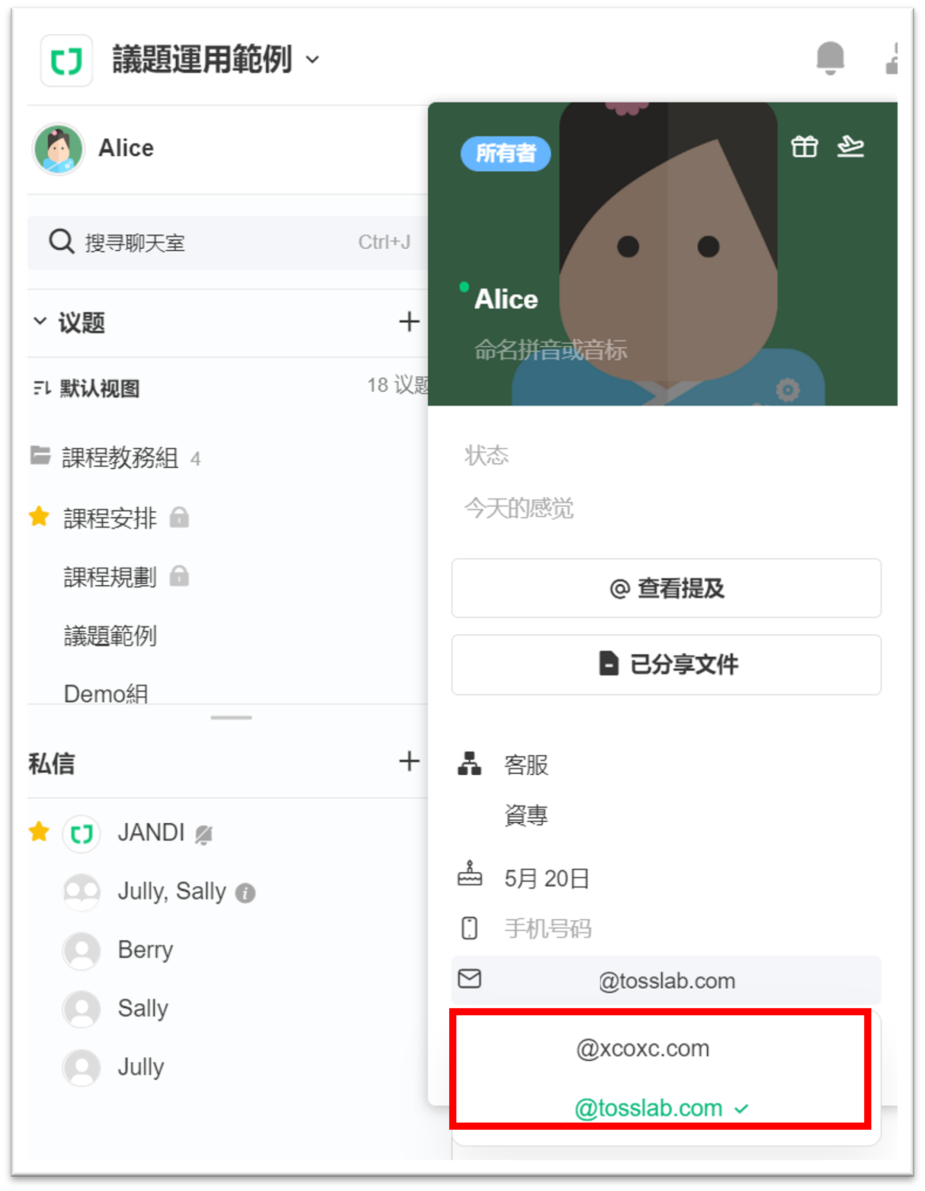 3. 一旦您注册多个电子邮箱,您可以于 [简介] 中选择设置电子邮箱至个别团队中。