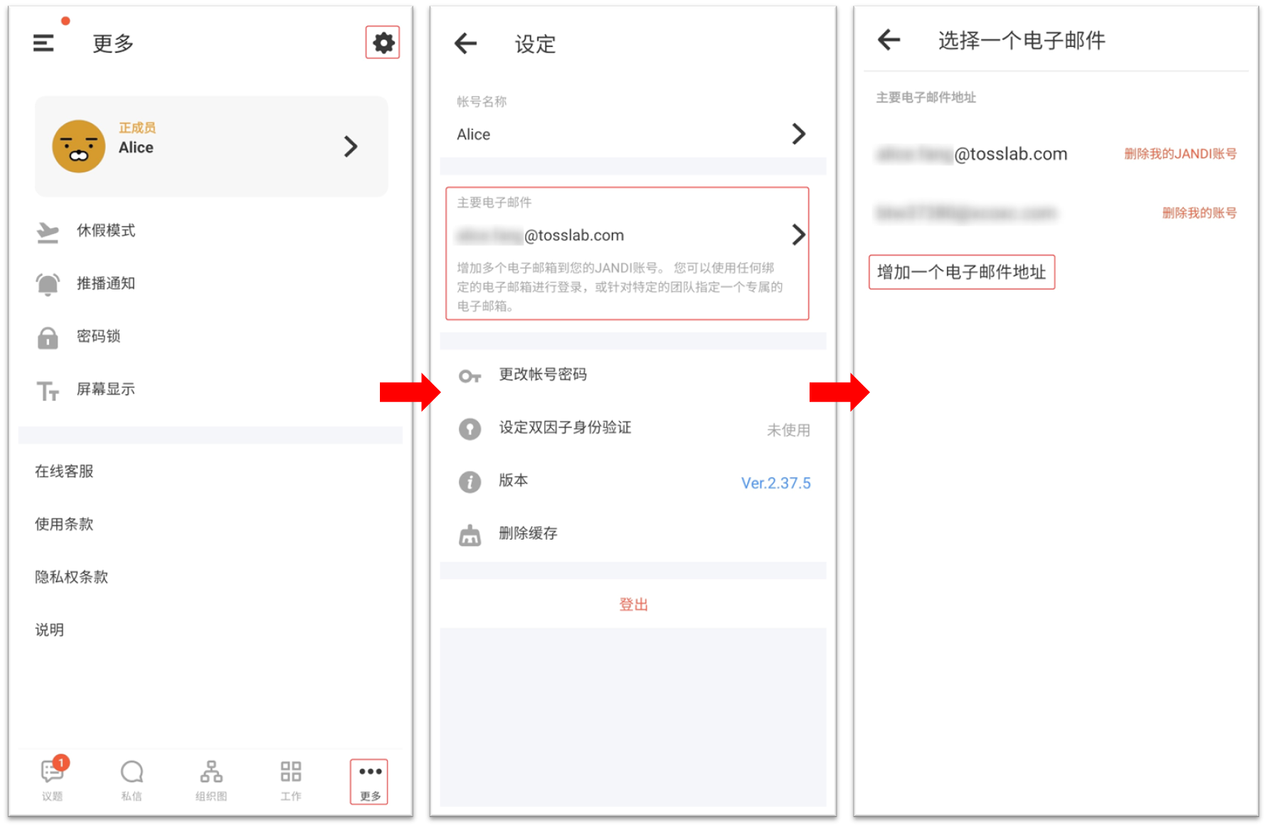 因此,若您用於注册 JANDI 的电子邮箱为备用邮箱,您可以登录所有已注册的电子邮箱来设置个人简介。