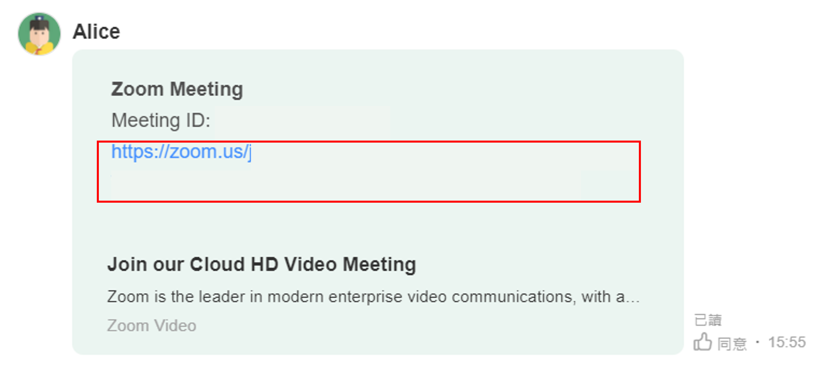 3-3) 通过聊天室中建立的会议链接进入视频会议室。