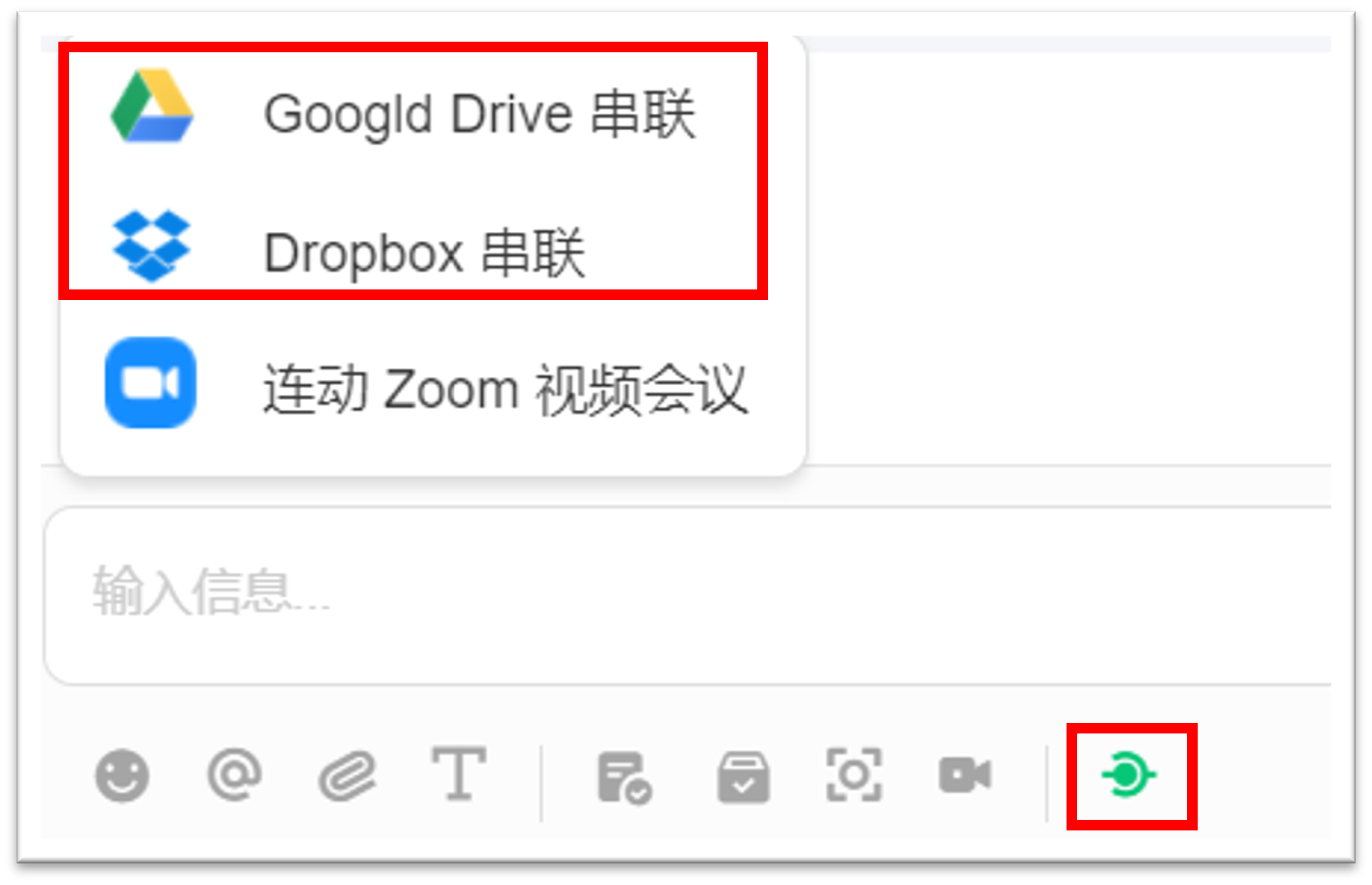 1. 点击信息输入框下方的 [整合串联],选择您使用的任何一个 Google 或 Dropbox。