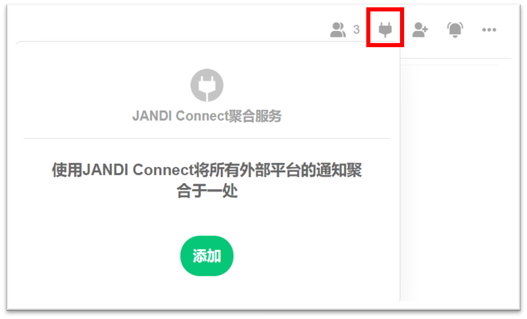 1. 在 JANDI 界面上方或议题右上角,点击 [JANDI Connect 2.0] 图示。