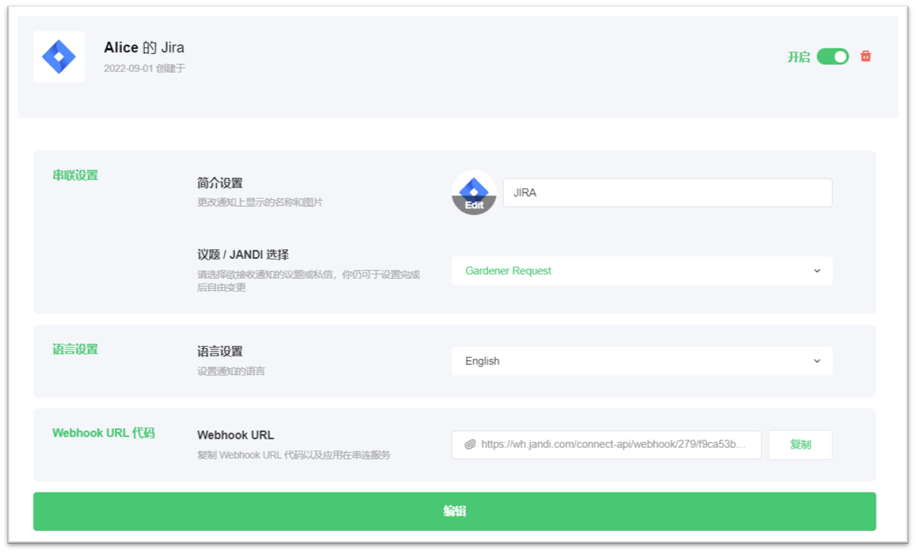 8. 您可以随时编辑您的整合设置。