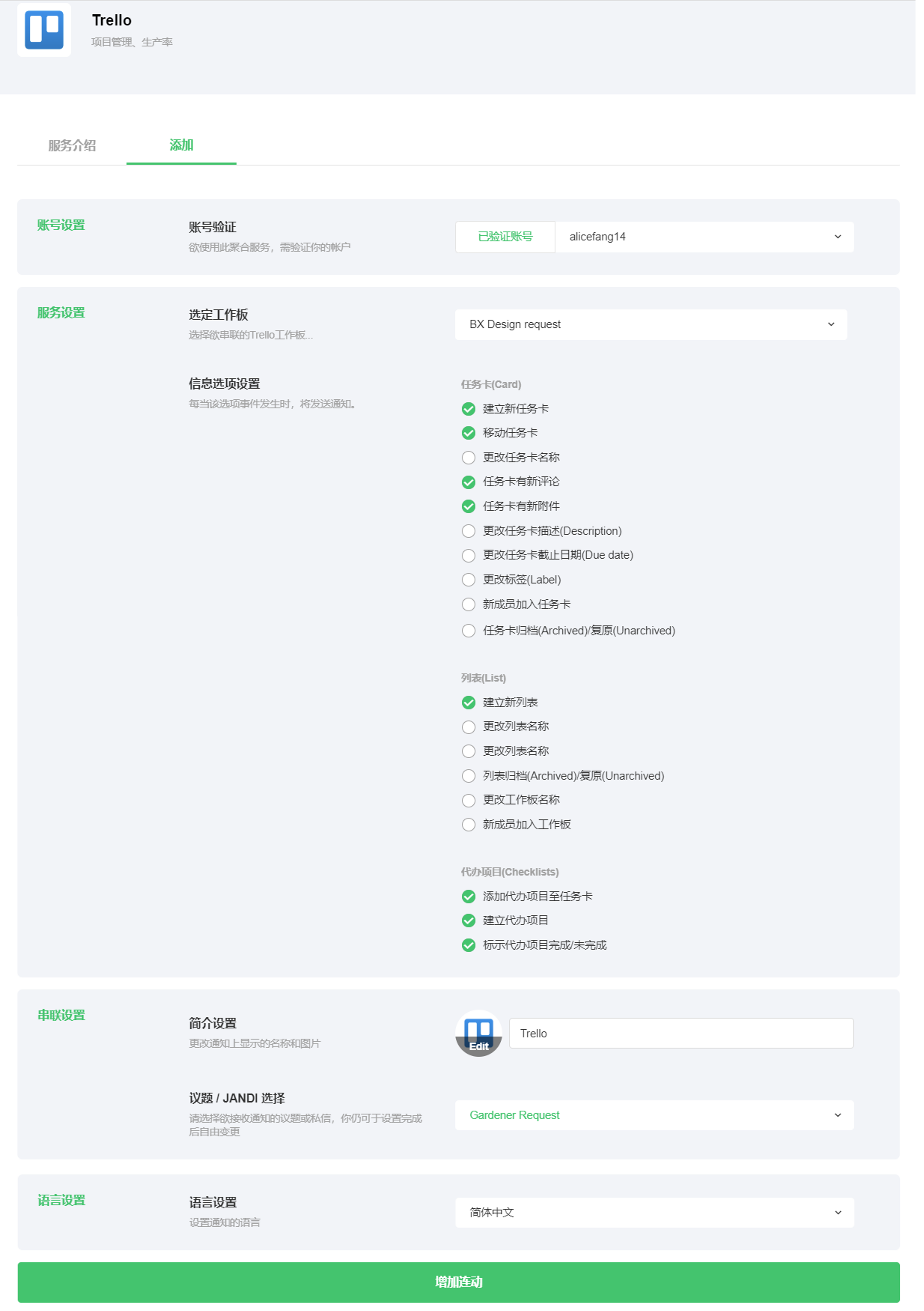 5. 选择您希望接收通知的 Trello 看板以及要将通知发送到的位置(议题或私信)。