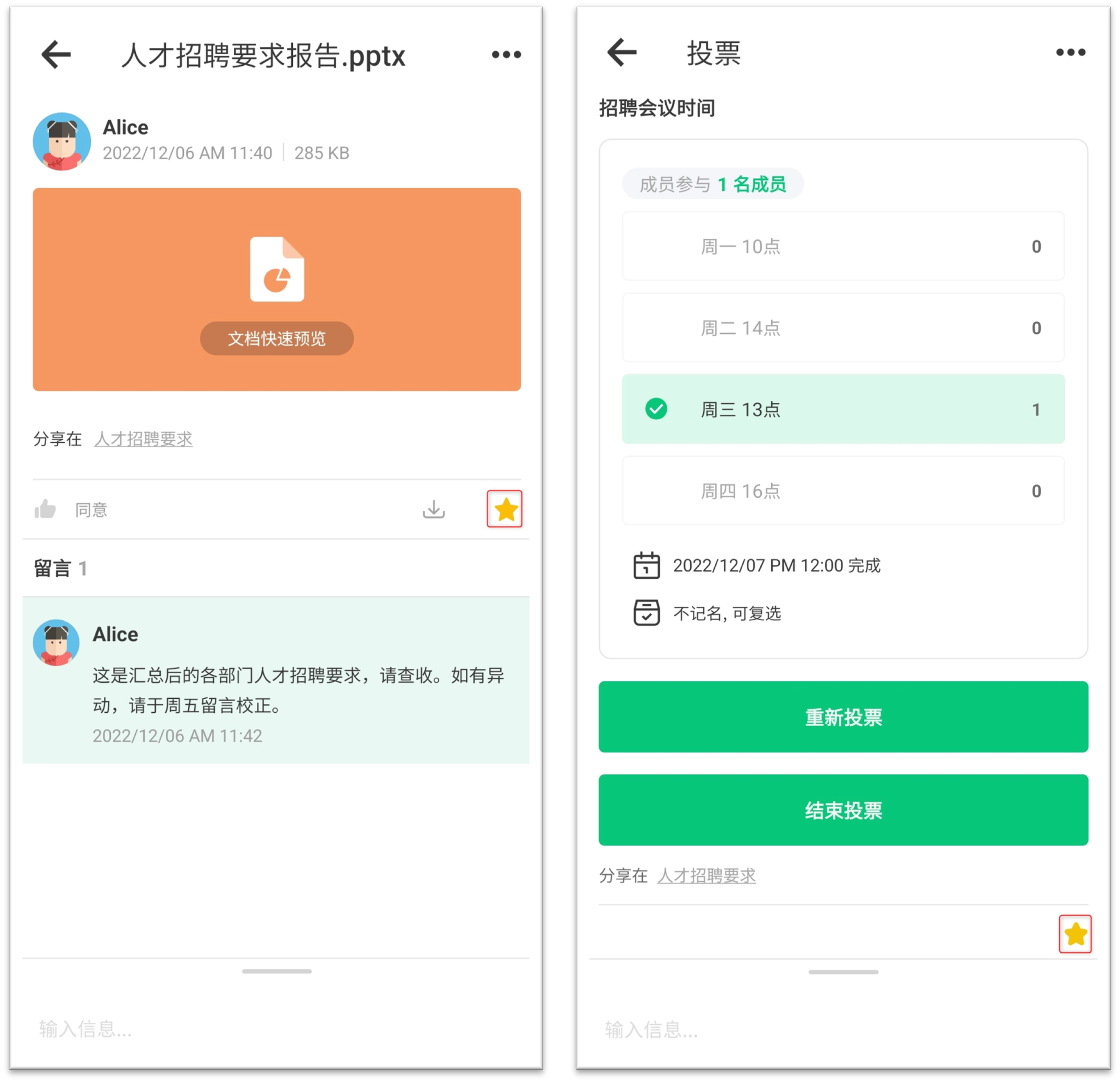 文件、投票:跳转至文件详细信息页面,并选择位于文件或投票右下角的⭐图示。
