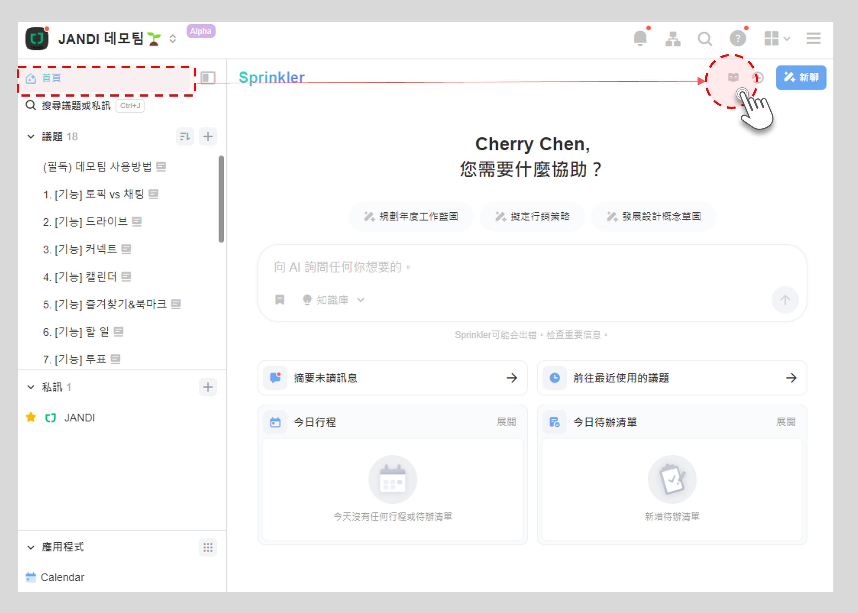 a. 左上角 [首页] → 点击书本图标 [知识库云端硬盘]