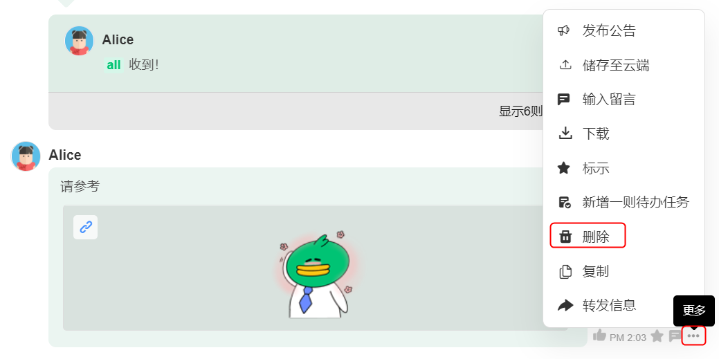 在要删除的文件旁点击 [...] 更多 > [删除]。