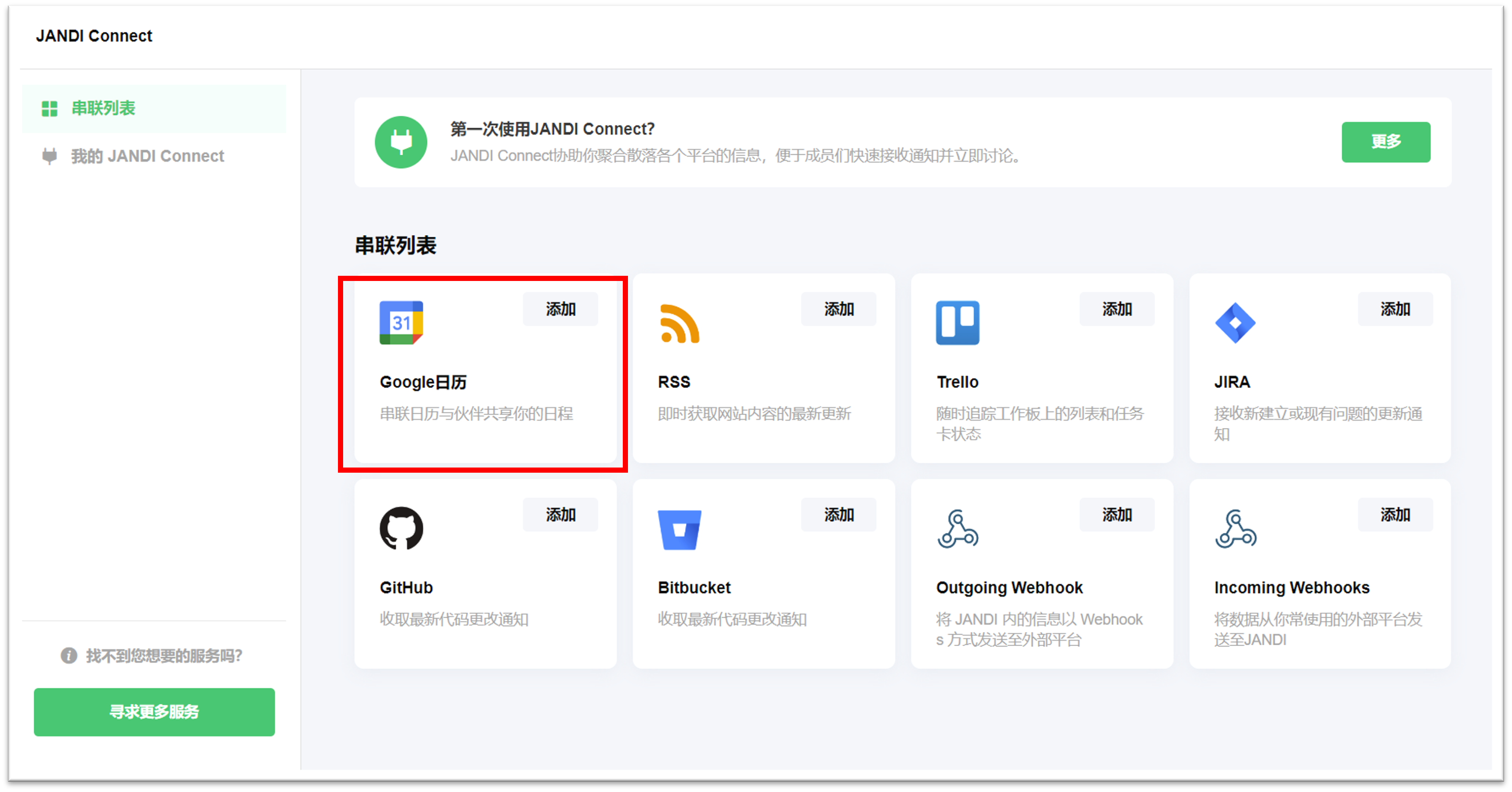 进入串联服务后,点选 Google 日历的选项,并点击添加。