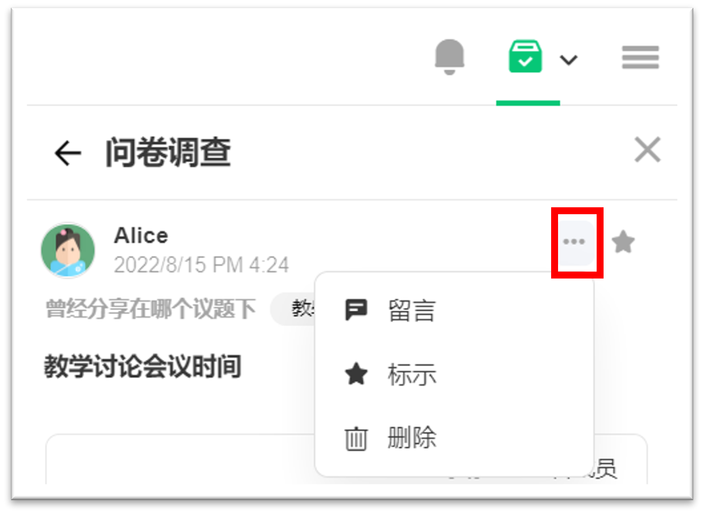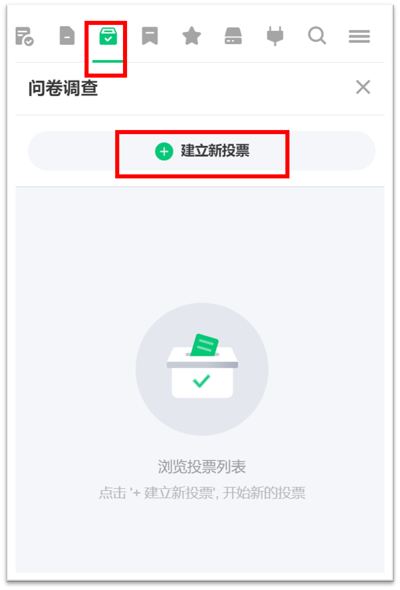1. 在 JANDI 界面右侧,选择 [问卷调查] 图示。