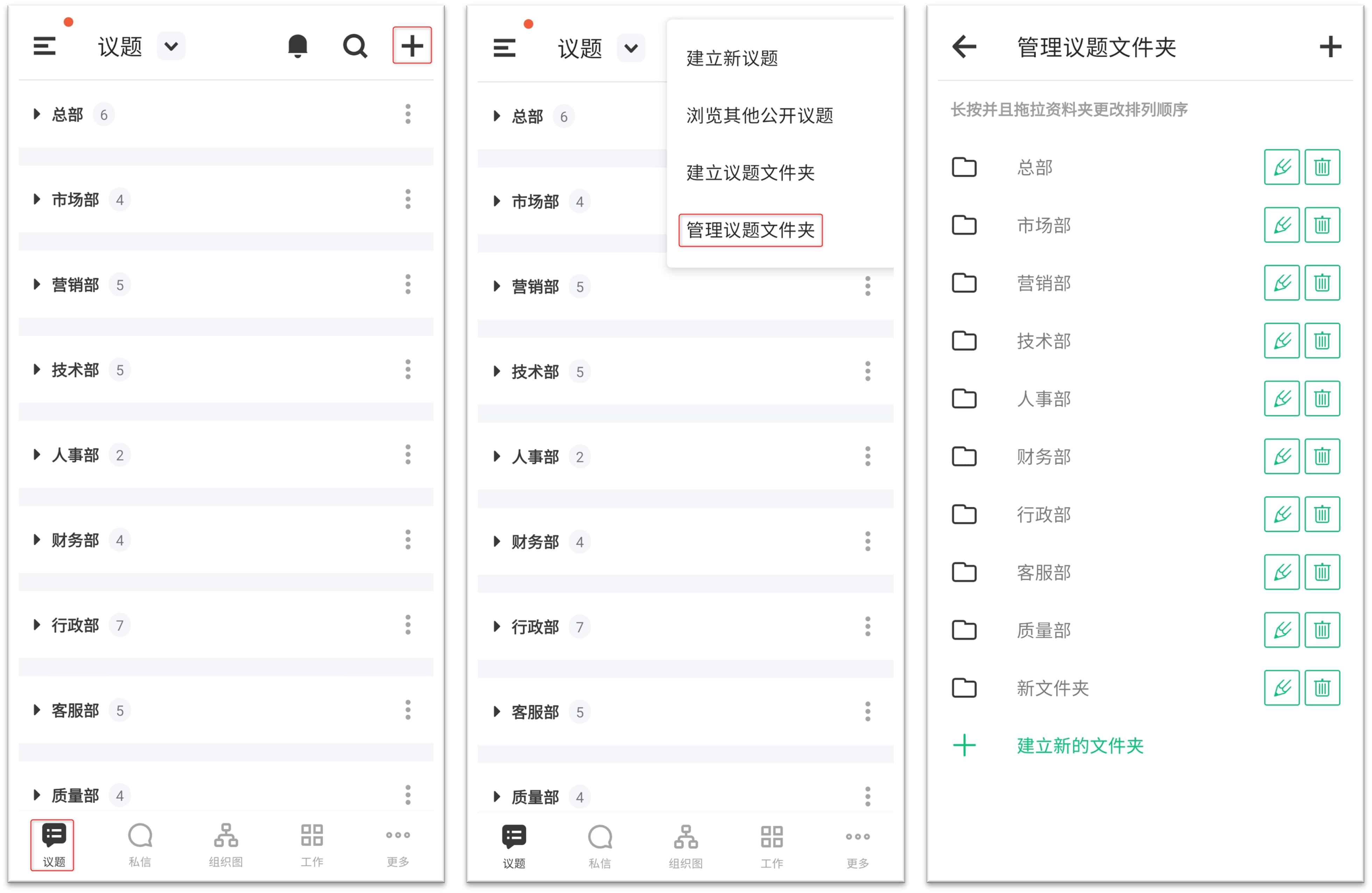 <文件夹内的议题与文件夹排序变更方法>