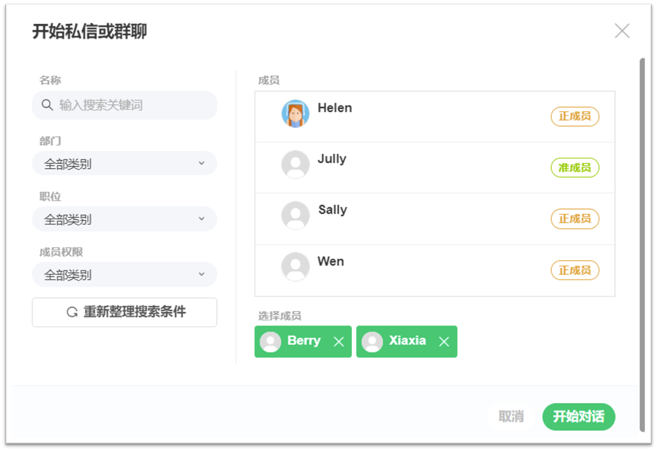 2. 选择欲对话的成员并点击 [开始对话]。