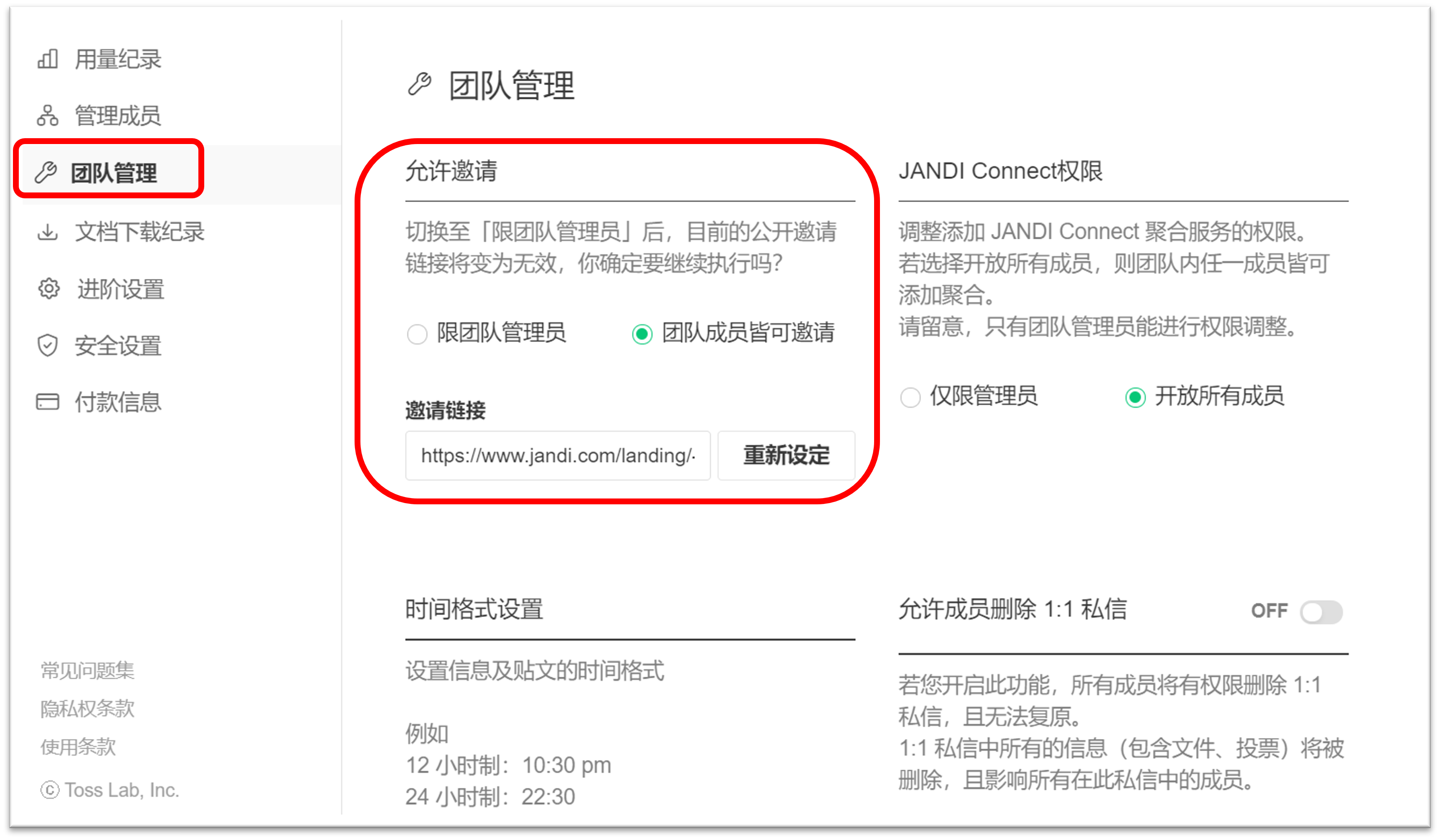 若您是团队管理者,您可以允许或限制团队成员邀请新成员。