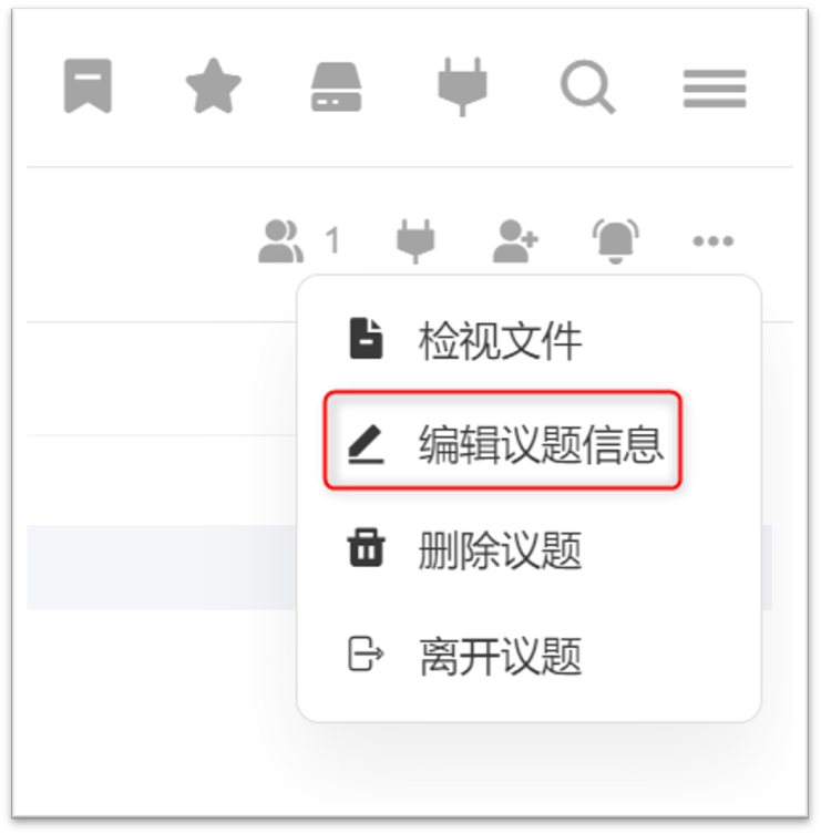 1. 在议题的右上角,选择 [···] 图示和 [编辑议题信息]。 请记住,只有议题管理员可以编辑议题信息。