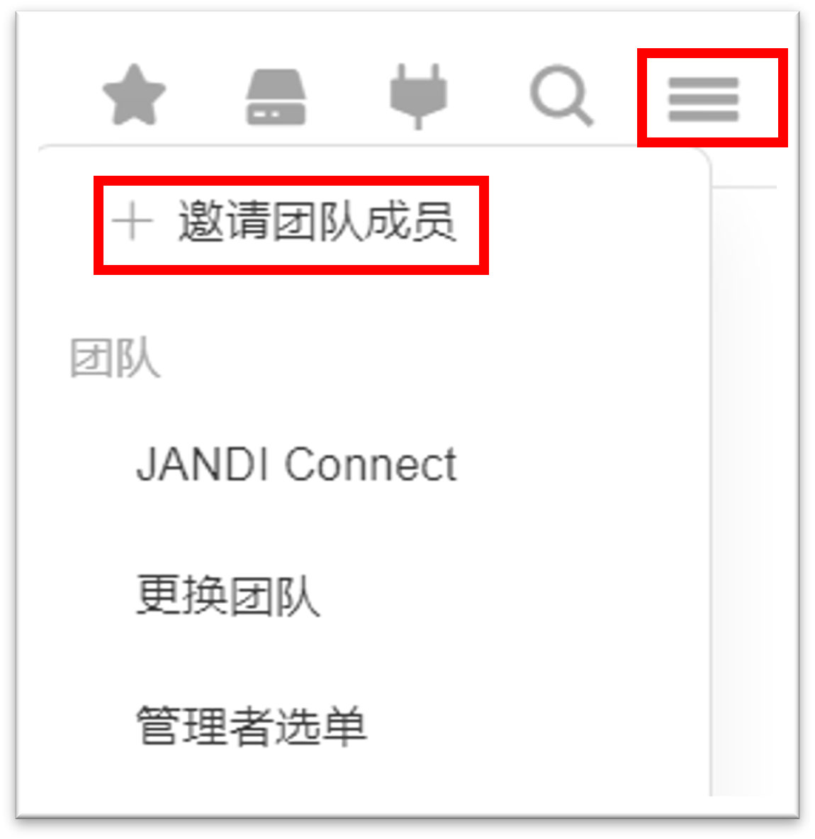1. 于 JANDI 界面右上方,点击「≡」图示,选择「+ 邀请团队成员」。