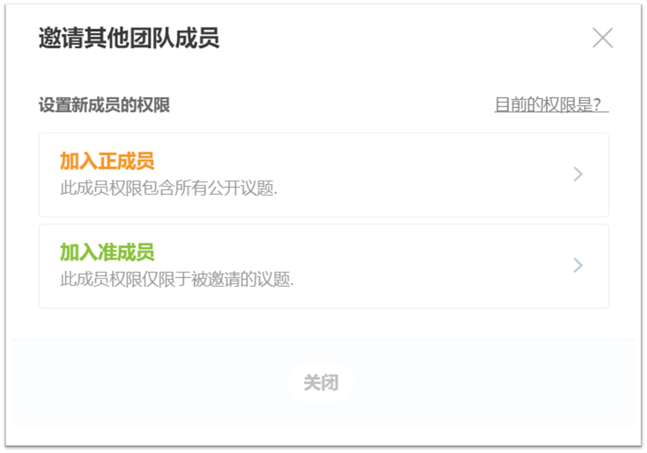 2. 选择欲邀请的新成员权限,你可以选择以正成员或是准成员的方式邀请加入。