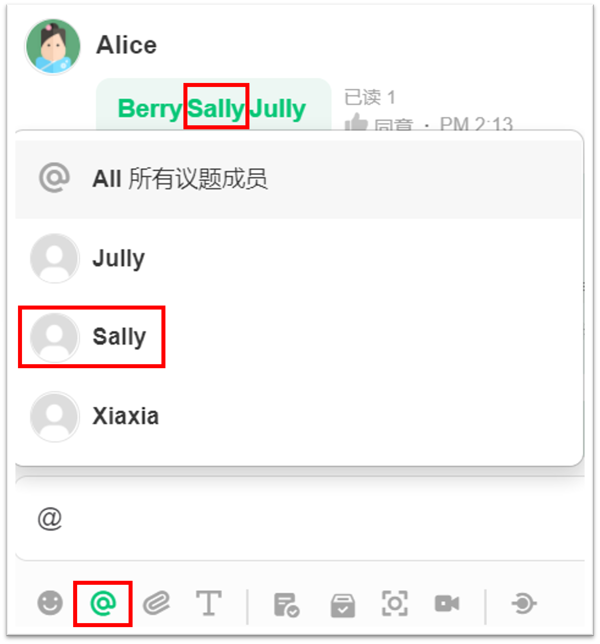 输入 [@ + 成员名称] 以提及成员。