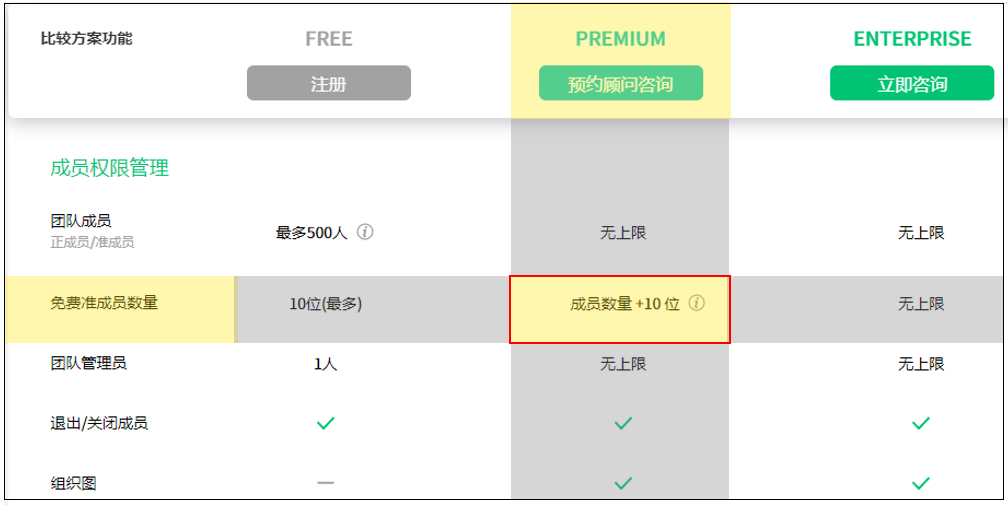 ※ 请注意,如果您使用 Premium 方案,则超出的准成员数量将会被酌收费用!