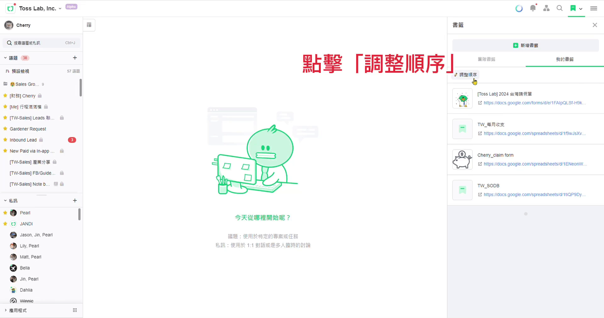 💡【操作方式】:[书签] > [调整顺序] > [拖动书签] > [保存]。