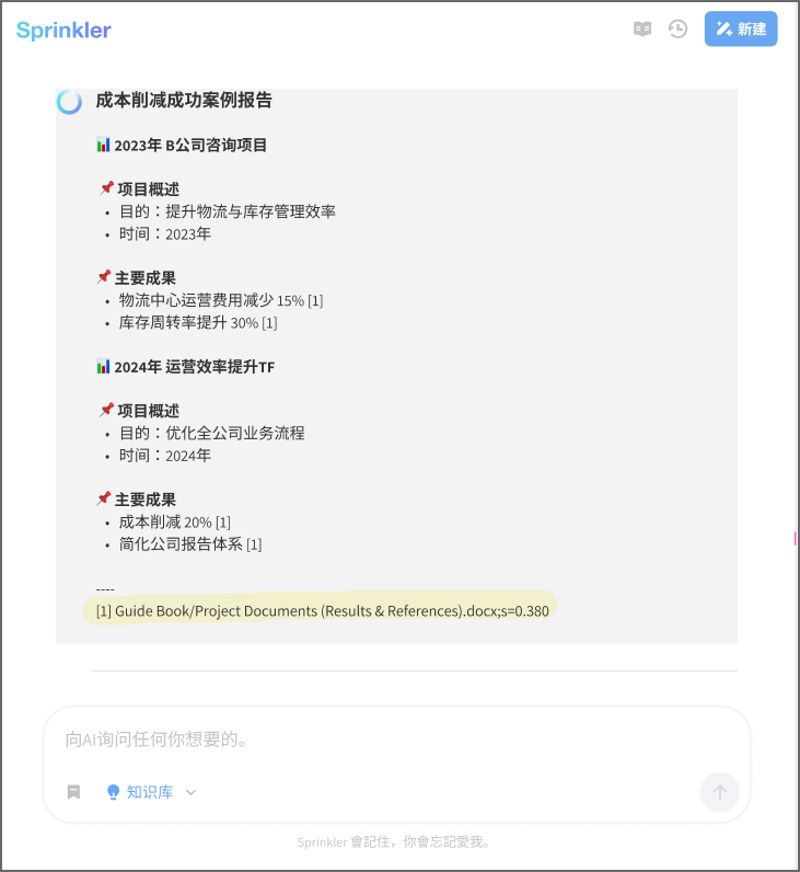 当您需要基于公司已有的文档、数据和信息来获取准确答案或查找相关资料时,可以使用知识库功能。它尤其适合需要参考内部资料进行问答或文档搜索的场景。