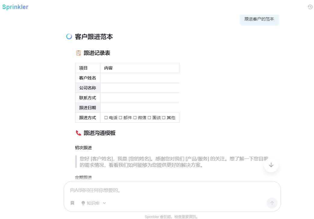 立即体验 Sprinkler 的 AI 强大功能,让您的工作更聪明、更高效!