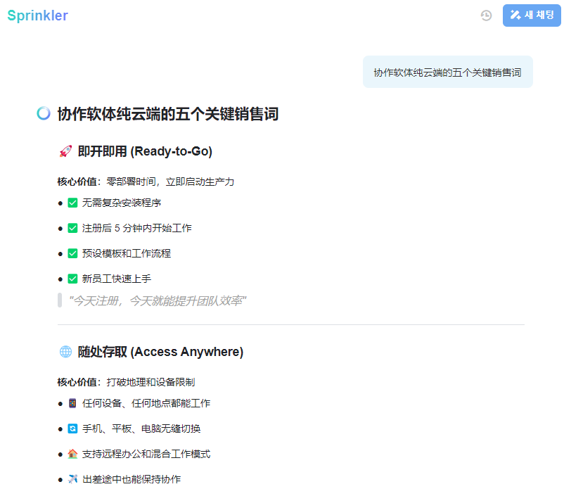 想要撰写或修改讯息、搜寻资讯,还是进行创意发想,Sprinkler - Ask AI 都能协助您。